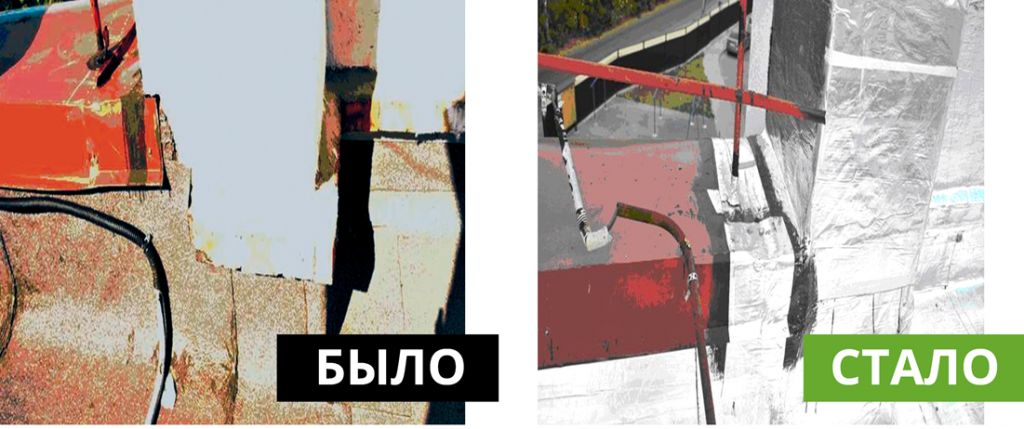 Самоклеящаяся кровля с алюминиевой фольгой позволяет произвести РЕНОВАЦИЮ СТАРОГО КРОВЕЛЬНОГО ПОКРЫТИЯ БЕЗ ИСПОЛЬЗОВАНИЯ КРОВЕЛЬНЬIХ ГОРЕЛОК и УДАЛЕНИЯ СТАРОГО КРОВЕЛЬНОГО ПИРОГА!