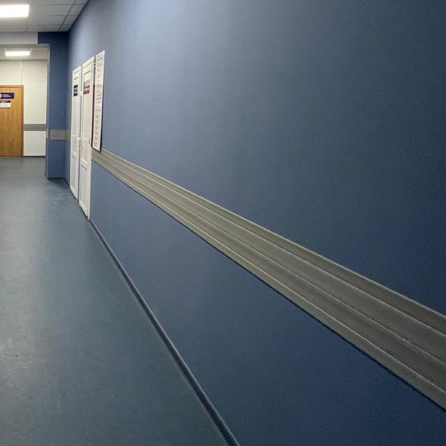 Отбойник для стен изготовлен из мягкого ПВХ, он легко гнется, благодаря чему возможно использование на закругленных стенах.