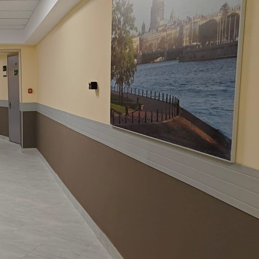 Виниловый отбойник для стен подходит для любых офисных, детских и медицинских учреждений. Применение отбойников целесообразно в помещениях с большой проходимостью, это коридоры больниц, университетов, школ, детских садов, залы ожидания, кабинеты, приемные, офисные помещения и т.д. Подобная защита для стен сохранит целостность покрытия и увеличит интервал между косметическими ремонтами.