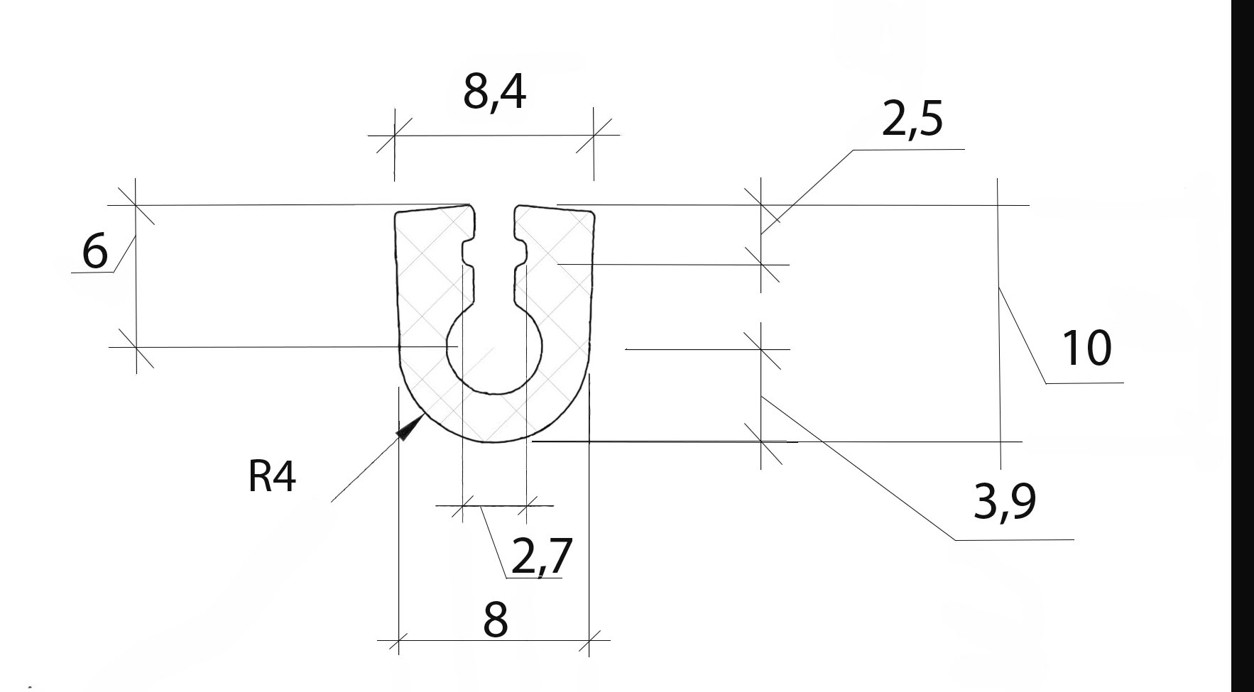 КПУ-209 Уплотнение для узла примыкания линеарных панелей алюминиевого сайдинга НВФ Г-С. Материал SEBS.