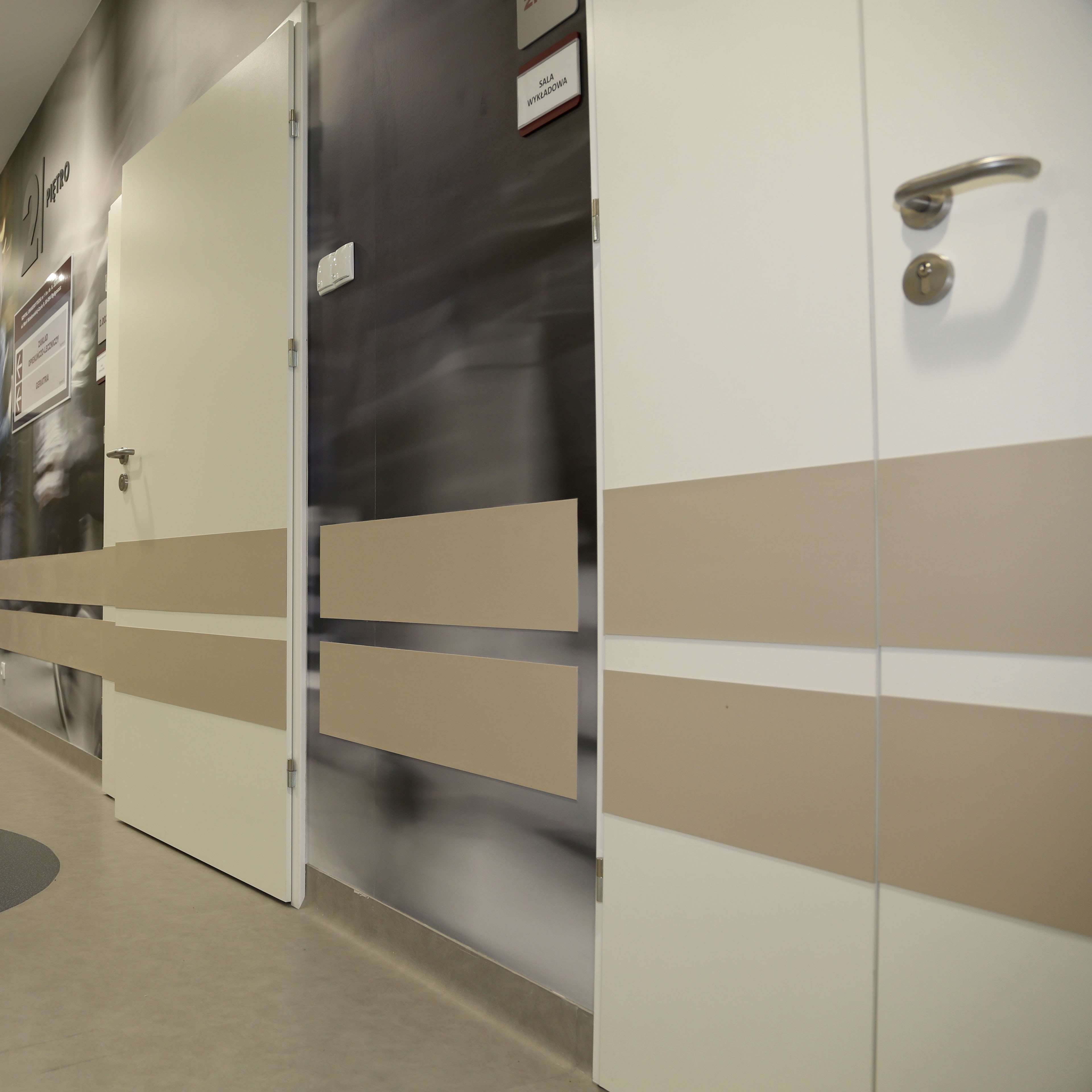 Пластиковая отбойная доска (виниловая пластина) надежно защищает стены от повреждений, вызванных ударами инвалидных колясок, тростей, каталок и другого оборудования. Она помогает сохранить отделку стен, продлевая её срок службы и способствует созданию комфортной и безопасной среды для всех посетителей.